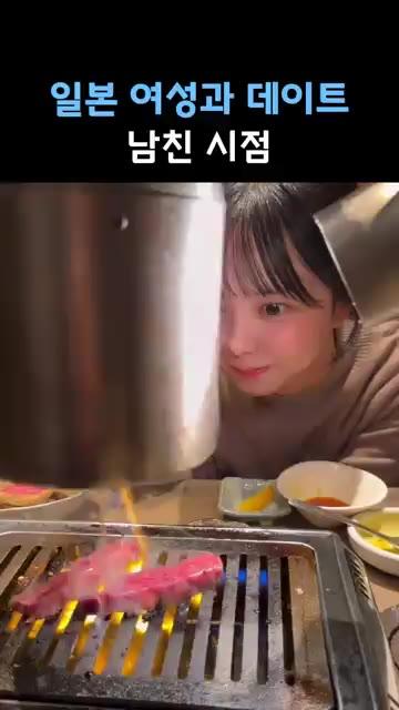 데이트때 한국남친에게 고기 구워주는 일본여친N