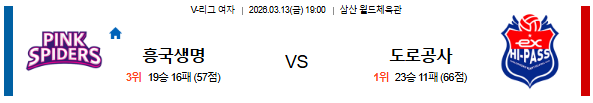 # 홈팀 : 흥국생명(19승16패)